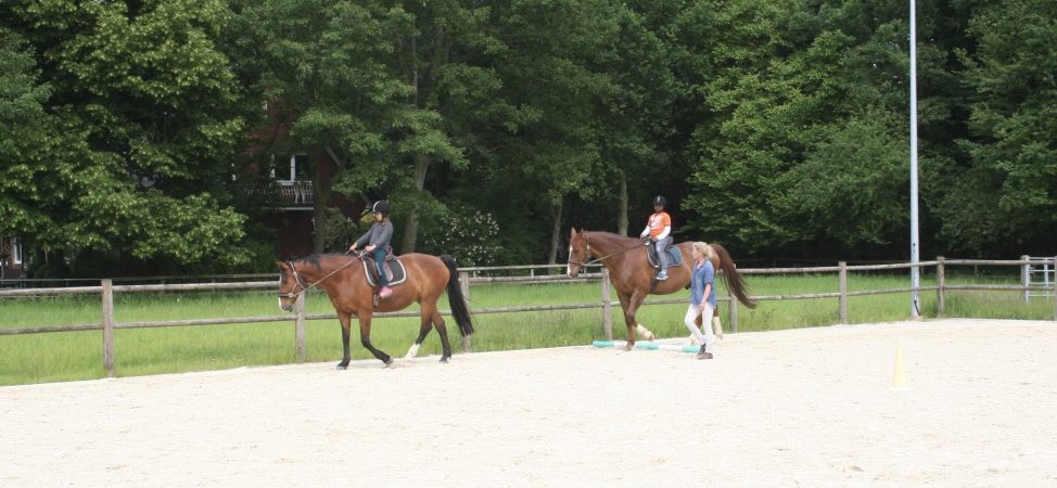 Wir gestalten alle Reitstunden individuell! Alles nur keine Massenabfertigung. Wir bietet Reitunterricht in Einzelstunden, in Intensivgruppen mit zwei Reitern oder Kleingruppen, für begeisterte Reiter jeden Alters, für Anfänger und Fortgeschrittene. Die klassischen Reitmethoden werden durch die neuesten Erkenntnisse der pferdegerechten Ausbildung ergänzt. Im Reitunterricht möchten wir Ihnen den Umgang mit den Pferden näher bringen. Natürlich und gewaltfrei lernen Sie auf unseren gut ausgebildeten Pferden reiten. Der richtige Sitz wird auf Wunsch zusätzlich an der Longe vertieft. Kinder ab fünf Jahren lernen spielerisch den Umgang mit Pferden.